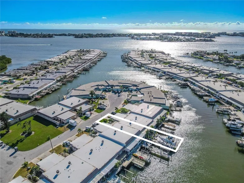 STUNNING WATERFRONT VILLA! This unit has a dock that includes a 16,000-pound oversized boat lift for up to a 36-foot vessel... a true boater's dream! Welcome to this beautifully upgraded villa that embodies the ease and charm of coastal Florida living. Designed with care and attention to detail, it provides a perfect balance of comfort, elegance, and function. A private brick-paver courtyard surrounded by tropical landscaping welcomes you home. The space feels peaceful and inviting, with room for a grill or caf table and a wall-mounted fan to keep the air cool while you relax outdoors. The decorative glass front door opens to a bright, open-concept interior filled with natural light and a warm coastal feel. Ceramic tile floors flow throughout, creating a polished and cohesive look. Crown molding adds subtle character, and recessed lighting gives each room a soft, even glow. A kitchen window overlooks the courtyard, connecting the indoor and outdoor spaces beautifully. The kitchen blends timeless design with modern convenience. A large granite island provides seating, storage, an apron sink with garbage disposal (2020), a touch faucet (2025), and built-in outlets. Custom cabinetry and under-cabinet lighting highlight the craftsmanship. The Dacor refrigerator (2020), Sharp under-counter microwave (2025), double built-in oven (2025), dishwasher (2025), and induction range (2021) create a kitchen ready for both everyday living and entertaining. The sleek range hood, pot filler, and dual-zone wine and beverage refrigerator add thoughtful touches, while the built-in TV nook keeps the space relaxed and functional. The dining area flows naturally into the living room, where wide sliding glass doors open to the canal and fill the space with light. The open layout feels spacious yet cozy, ideal for gatherings or quiet evenings at home. The primary suite is a calm retreat with two closets, including one with custom built-ins. The ensuite bathroom feels like a spa with split vanities, stone counters, lighted mirrors, and custom water faucets that complete the designer look. The rainfall shower and jetted soaking tub create the perfect place to unwind, while the built-in linen storage and private water closet add convenience. The second bedroom is versatile, featuring both a walk-in and standard closet. Sliding glass doors installed in 2020 open to the front courtyard, and the retractable screen allows fresh air in during cooler months. The nearby bathroom continues the home s cohesive style with a frameless shower, stone vanity with copper sink, and built-in storage. At the back of the home, the bonus room overlooks the canal and provides a comfortable space to read, relax, or entertain. Built-in shelving, a fireplace, a TV area, and a storage closet add flexibility. Through the glass doors, the composite deck completed in 2022 extends the living area outdoors, creating a peaceful place to enjoy canal views and breezes from sunrise to sunset. The private dock includes a 16,000-pound oversized boat lift for up to a 36-foot vessel, 50-amp shore power, remote color-changing railing lights, and a lighted pedestal that casts a soft glow across the water at night. Additional updates include a new roof (2025), a leased water softener (2020), and a water heater (2020). Located in the gated 55+ community of Boca Ciega Point, residents enjoy a friendly, active lifestyle with access to a clubhouse, shuffleboard, pool, tennis courts, and 24-hour security.