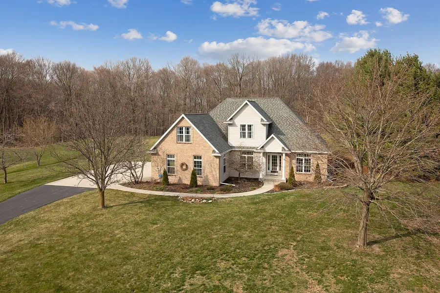 EXQUISITE, DISTINGUISHED & RICH w/features you will fall in love the minute you enter this 1.5 story located on 1.64 acres in the Hidden Meadows subdivision in the town of Plymouth. Quiet country & cul-de-sac location! Great curb appeal as you drive up. Once inside you will love the formal dining & office w/French doors, large windows & crown moldings, both rooms just off the foyer! Love the beautifully appointed great room w/a coffered ceiling, gas fireplace, floor-to-ceiling windows w/views of the backyard & woods as a backdrop PLUS all the nature that you can see from here! Stunning & spacious kitchen w/granite counters, 2 islands, vaulted ceiling & cabinets galore. Nice open concept w/dining-great room-kitchen. 1st-floor master suite w/walk-in closet + gorgeous full bath w/double sinks & tiled walk-in shower. Mudroom w/stackable washer & dryer. There is another full laundry room in L...