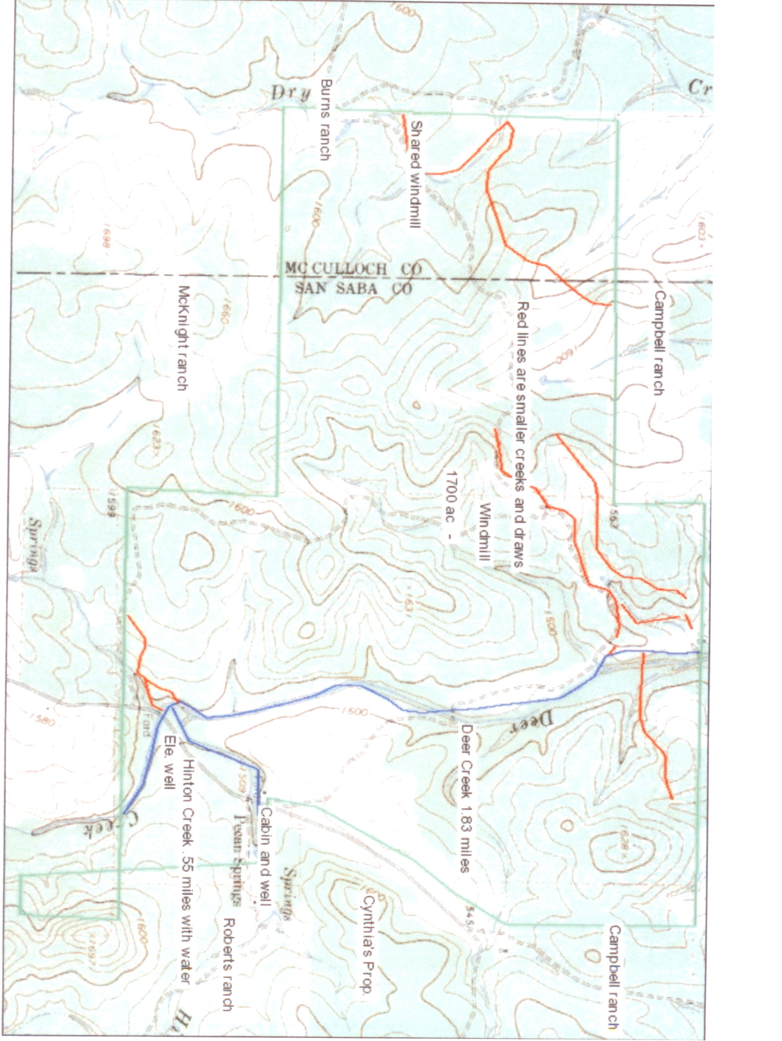 This outstanding ranch is located approximately 6 miles north of Fredonia, Texas, with easy access from County Road. Approximately 253 acres are located in McCulloch County, and 1392 acres being in San Saba County. A tremendous livestock and hunting property with sweeping views of the surrounding countryside. Hinton Creek and Deer Creek converge on the South East portion of the ranch, creating a haven for wildlife. Springs along both creeks are flowing, even during times of drought. Several other seasonal creeks and draws run through the property, adding to its attractiveness. Century old Live Oak trees, Post Oaks, Native Pecans, cedar, and mesquite as well as other brush indigenous to the area are found in abundance. The grass is strong, as the ranch has been rested from livestock for the past three years. An old historical rock home serves as a hunter's cabin and has electricity and water. There is also a windmill, a shared windmill, several dirt tanks, and a well with electric pump that is not currently working. The fencing on the North and South portion of the ranch is very good, the west and east are in fair condition. The hunting is excellent with an abundance of white tail deer, turkey, and feral hogs. The live water, as well as the close proximity to the San Saba River makes this ranch a veritable menagerie of wildlife. This historical ranch has been honored as a Century Ranch in the Texas Family Land Heritage Program. It is a rare opportunity to offer a ranch with as rich a heritage as the Capps Ranch. It is truly an outstanding property as a livestock or recreational ranch. Reduced to $2495/acre! Sellers are motivated!