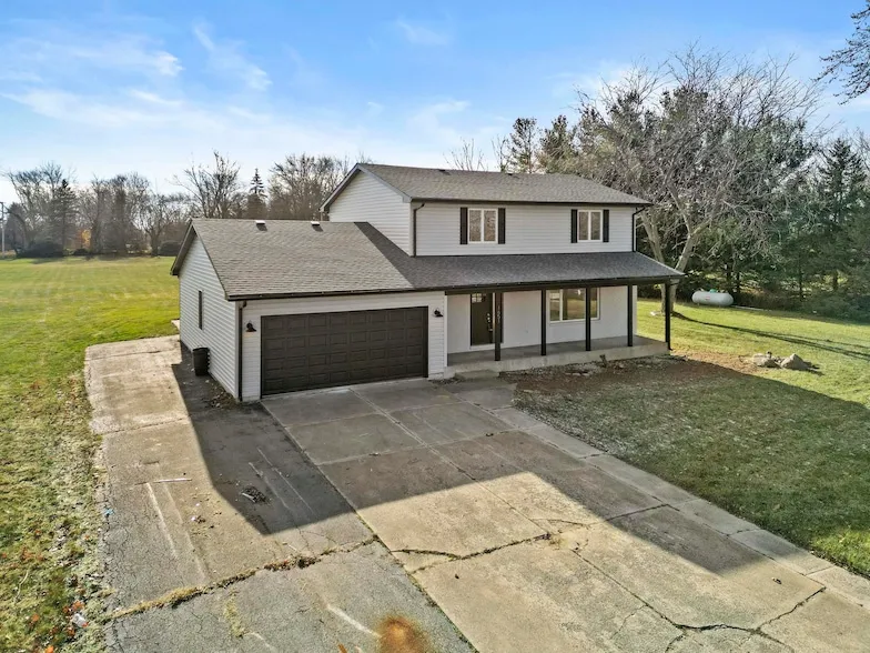 A RARE FIND! Your search for a new house & LAND ends here. Completely remodeled inside & out, this TURNKEY property features 4 bedrooms, 3 bathrooms, & spans just under 2,000 sq. ft. A large, COVERED front porch offers a warm welcome, leading you inside where refined, contemporary design awaits. Luxury vinyl flooring enhances the open-concept layout, seamlessly connecting the family room, living room, dining area, & kitchen--perfect for both entertaining & relaxation. The kitchen is a true showstopper w/ sparkling QUARTZ countertops, an abundance of soft-close cabinets & drawers, & brand-new STAINLESS-STEEL appliances. Primary bedroom offers ample space w/ double closets & a chic ensuite featuring a custom tile shower. Upstairs, the additional bedrooms are roomy w/ oversized closets, while the full bath showcases a stylish vanity & handcrafted tile work. Enjoy peace of mind w/ fully updated features, including a new ROOF, siding, garage door, mechanicals (FURNACE, water heater), washer, dryer, & more! The 2-car garage includes a built-in workspace for home projects, & a backyard shed adds extra storage. Situated on a 1.65-ACRE lot, the vast yard provides limitless potential--build a pole barn, have room for all your outdoor activities, enjoy summer nights on the patio, or even SUBDIVIDE for an additional lot w/ access from Grant St. Ideally located just minutes from downtown Lowell, schools, shopping, & the expressway, this is the perfect next home to make YOURS. Schedule a showing TODAY!