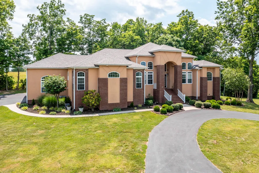 Gorgeous custom designed ranch home with a full finished basement that features a view of Herrington Lake from front and farmland in rear. The detail that went into this home is extraordinary. It includes hardwood floors, a well-designed kitchen & great room, a spacious primary bedroom en suite, an open-air design that comes from well-placed 10'-14' ceilings and openings, a two sided fireplace and a three car garage (with basement access). There are 3 beds and 3 full baths on first floor, along with a home office (can be bedroom), and a formal living room. There is a near full length covered deck that offers privacy and quiet. There are 4 skylights. The basement guest suite has a kitchen, bedroom, bath, and its own sitting/dining room (could be a rec room). The basement includes an exercise room (could be a bedroom), a large media room, utility rm (2 water heaters), and 700 sf of workshop with raise door. There are two RV (30 & 50 amp, one with septic hookup). Lots of outdoor entertainment space. Royalty's Marina & Boat Dock is a short distance away. Home is accessed by a circle drive and a side drive leading to side entry garage. Seller is providing a 1-year HSA Home Warranty