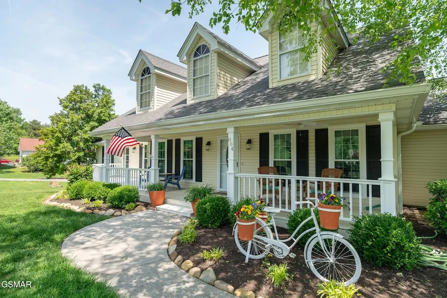 Situated in the serene foothills of the Great Smoky Mountains, this charming one-level Kodak, TN home offers Southern elegance on a sprawling 1.65-acre lot with breathtaking mountain views. Perfectly positioned for easy access to I-40, this thoughtfully designed residence is ideal for buyers seeking comfort, privacy, and timeless appeal. The home has two spacious primary suites, each with its own private bath, strategically placed at opposite ends for ultimate space. A third bedroom and a convenient hall bath complement the open-concept living, dining, and kitchen area, where a cozy gas fireplace sets the tone for warm gatherings. The roomy kitchen shines with a large island, ample storage, and modern functionality. Embrace outdoor living with a covered front porch, ideal for sipping sweet tea, and a rear screened porch paired with an expansive deck overlooking the lush backyard and dist...