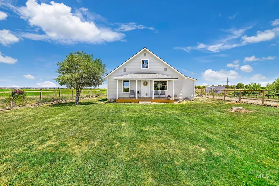 This idyllic farmhouse will invite you to join the homesteading lifestyle! Nestledon 1.69 irrigated acres, this property holds pasture space, chicken coop, grape vines, berries, fruit trees, & a fantastic 24x26 SHOP with 2 overhead doors. The farmhouse was just resided with hardy board siding and freshly painted and new windows! Roof was replaced in 2020! Enjoy the Idaho sky art from the new front deck. The interior of this sweet home has an updated kitchen, bathroom, and a spacious livingroom with ample natural light. The primary bedroom is on the main floor, and the upstairs holdsthe most whimsy second bedroom and second living area that could be used as a 3rd bedroom!