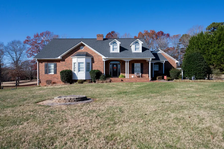 Stunning brick home with main level living overlooking the 18th hole at the Yadkin Country Club. Hardwood flooring throughout the living area. Gas logs, stone fireplace accents the living room. Nice sunroom with access to the new composite deck with a retractable SunSetter awning; both with great views of the golf course. Full unfinished basement with a full bath and wood burning fireplace; lots of opportunity for future finished living space, or storage area. Oversized 2-car side entry garage with personnel door entrance, storage closet, and walk-in attic access. Basement also has a 3rd car utility garage access. Two separate concrete driveways to make for plenty of parking space. Beautiful home in great condition. No HOA and low property taxes.