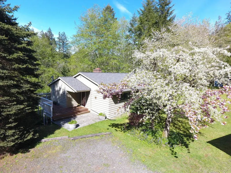 An affordable home on the island! Mid-Century classic beauty with wrap-around porch and fabulous 3 car garage/shop! Home has been in the family for decades, lower level recently finished as the perfect rental/MIL - complete with a full kitchen, washer and dryer, family room and large en suite primary bedroom - can be accessed by separate entry. The upper main floor offers a charming living room which abounds with natural light from picture windows. Original 1966 oak floors in the living room and the two large bedrooms. Light, bright kitchen and dining area enjoy all day sunshine with sliders to the expansive porch and deck area off the kitchen. Second washer and dryer on main level. Come and make your personal touches to this sweet home!