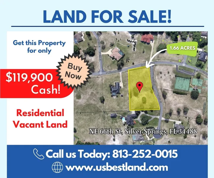 Research Parcel InformationStarting from Silver Springs, Florida, head north toward NE 33rd Street, then turn left onto NE 33rd Street. Make another left onto NE 30th Street, followed by a right onto NE 55th Avenue/Baseline Road, continuing for approximately 2.8 miles. Next, turn right onto NE 67th Street, proceed for 0.2 miles, then turn right onto NE 61st Avenue Road. After about 282 feet, make a left onto NE 66th Street; your destination will be on the right.