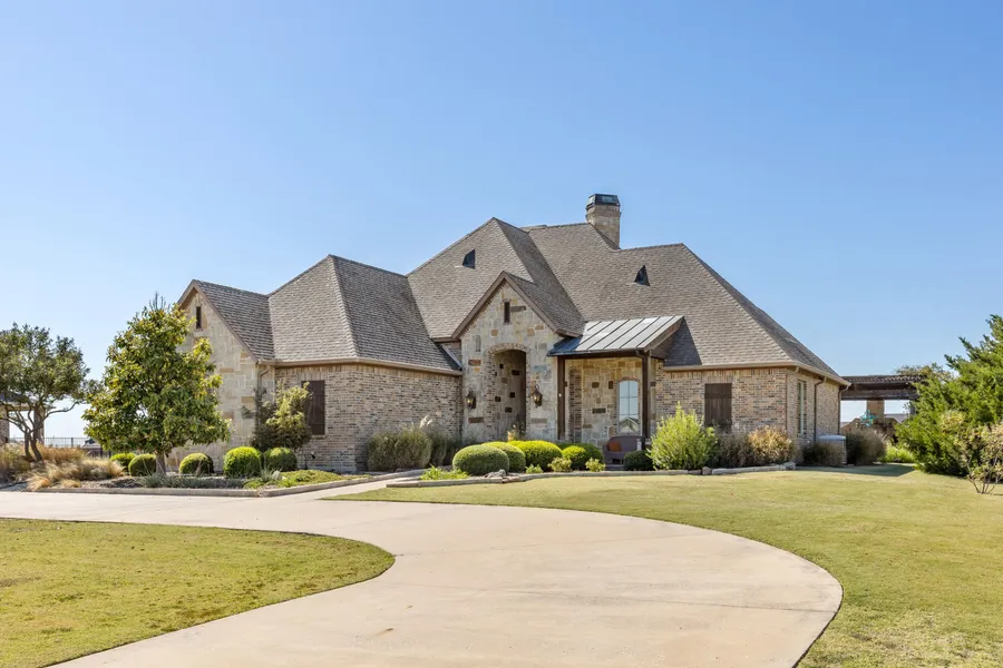 Stunning custom one owner home sits on 1.6 acres outside of city limits in Rockwall! Attention to detail is unparalleled. Entry features oversized wood front door & hand scraped hard wd flrs in a Marie Antoinette pattern; custom wood stained plantation shutters; Custom iron chandeliers; dry stacked stone fireplace in family rm & add'l see through fireplace between living & dining rms; exposed brick stairway; wine cellar w- iron door & wine fridge; granite c-tops in all bathrms & kitchen; solid core doors; primary & secondary owners retreats w- ensuite baths on 1st flr & media rm on 1st flr; tons of storage. Updated white kitchen showcases oversized island w- ample seating, commercial grade appliances include 6 burner Viking gas cooktop & vent, pot filler, warming drawer, dbl ovens, built in Kitchenaid Refrigerator & large walk-in pantry. Charming outdoor oasis is great for entertaining b...