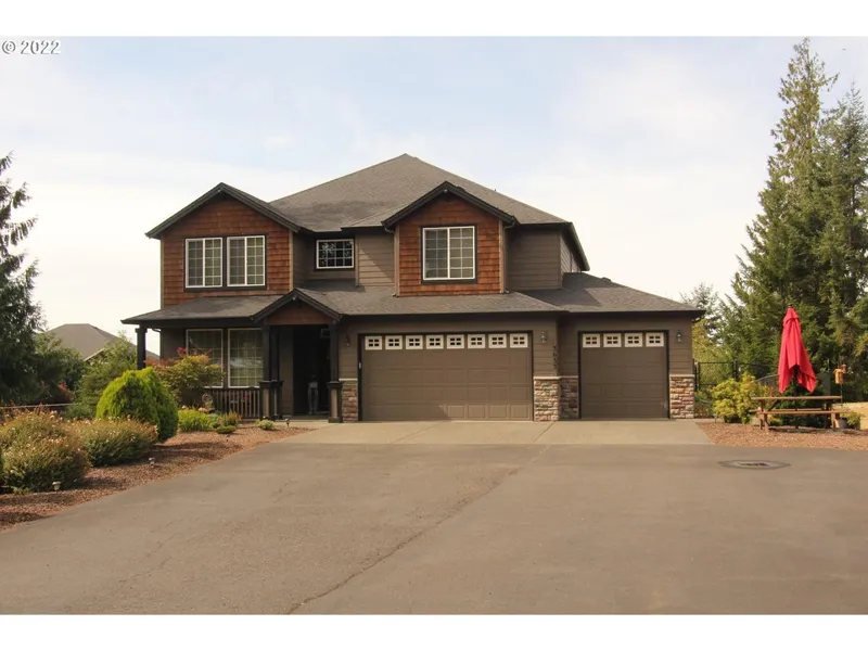 This immaculate home calls to anyone desiring the peace of private acreage with a lovely view & easy access to town! Cherry wood floors draw you from entry into the inviting great room warmed by the gas fireplace & looking upon the deck & valley. The gourmet kitchen has everything you need: double oven, pantry, island & new SS appliances. Enjoy the luxurious primary suites deck with views, fireplace & jet tub. Large office/loft. Extra deep 3-car garage, RV driveway space, central vac. & more!