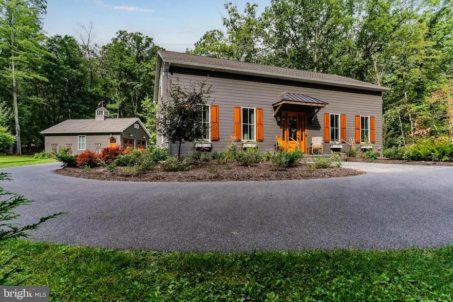 VERY unique "diamond in the rough" -designed by a discerning woman who knew what she wanted in her customized dream home, daily overseeing the construction with attention to every detail. Meticulously maintained since completed in 2019. Located at the top edge of camp/conference, it is 14 miles from Gettysburg and 6 miles to I-81 Scotland exit 20. It offers a safe and serene peacefulness that is hard to find, yet not too far away. Study the photos for this open floor plan mini "resort" for just yourself or a gang of young-at -heart, close friends or family to join you on the week-ends! The placement of the house on 1.6 acres allows for natural light to flood the inside while viewing trees from every oversized, casement windows(w/ Levelor blinds) .10' ceilings painted pale blue (many recessed lights) resembles the sky somewhat, creating a beautiful "I just want to stay here forever" feeling! All custom cabinetry in kitchen, three bathrooms and upper berths made by local cabinet maker Daniel Benedict. Reclaimed wood barn door slides over the pantry/broom closet. Two large windowed entry doors flank the front and the back of the house, allowing more light with the honey colored hickory flooring through out main floor. The main primary bedroom ensuite has a pickled pine wood ceiling, two barn doored closets on either side leads into large, tiled shower (NO glass doors to clean!), stack washer/dryer . Follow me up the gorgeous walnut stairs to be very surprised- an AMAZING BIG "Bunk Room" extraordinaire! 6 beds each having a closet , drawers, light & niche to charge your cell. Two skylights with recessed lights on vaulted pale blue wood ceiling add to the ambiance of this cozy carpeted luxurious hide out! One of the full baths has a stack washer/dryer for guests. The back deck is adorned by beautiful copper overhang. Gas firepit is not too far, nor is the hammock. 6" crawl space accessed by Bilco doors houses the electric box, tankless water heater , reverse osmosis water treatment system and much more storage. Circular driveway can accommodate many guests. Don't miss the copper peacock perched atop the glass cupola on the oversized two car garage. Well insulated, finished dry walls could house a ping pong table or lots of outdoor equipment. Pull down stairs to storage items on fully floored "attic". Every detail-including copper caps on cedar shutters- has been included; Enjoy AT trails, Caledonia State Park, 2 Penn National golf courses, Long Pine Dam reservoir, Totem Pole Playhouse, Gettysburg, Michaux XC skiing trails in close proximity- no city traffic to fight. Seller sadly relocating only due to family circumstances , making it difficult to leave her forever home in a sweet sequestered spot.