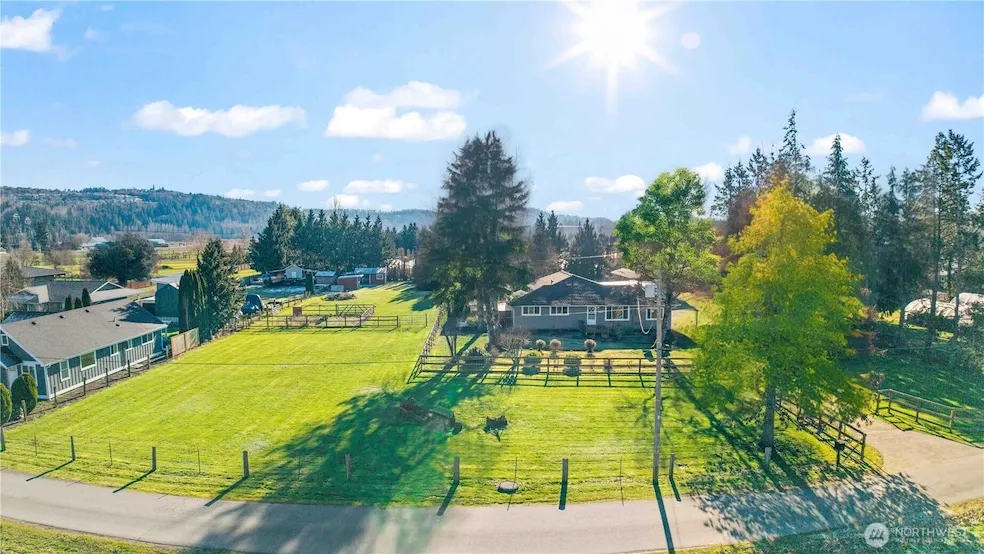 Immerse yourself in this rare, rambler home on acreage. Thoughtfully renovated, this home captures modern luxury paired with warmth. The primary ensuite, 3 guest rms, formal DR & 2 generous living spaces make it ideal for multi-gen living! The heart of the home is the chef s kitchen, w/high-end SS appls. Culinary enthusiasts will appreciate the central island w/cooktop, wall oven w/air fryer, custom cabinetry & lounge dining. The Ruvati sink, Corian CT's, lighting, & wine rack complete the refined ambiance. New furnace/LG Thinq W/D. 1120 sqft shop, 2-car DG, canning rm, livestock shelters, & garden. Fully fenced grounds create a private & tranquil space for a sports court, horses, & DADU. TOUR INSIDE TODAY!!