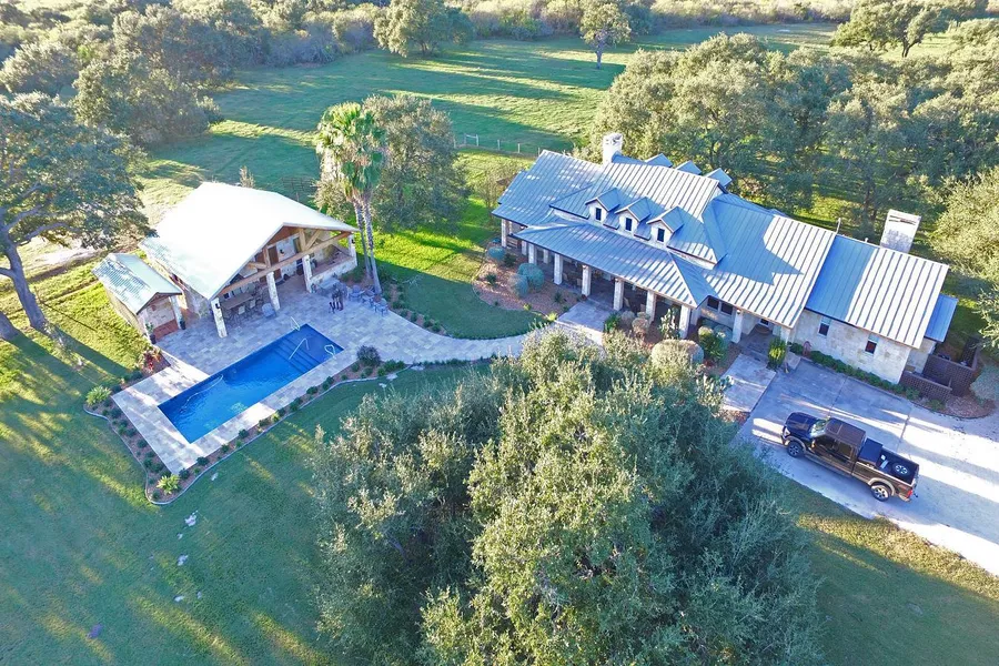 IMPROVEMENTS: Medio Creek Ranch`s top-quality improvements include a 3,382 sq. ft. three bedroom three and a half bathroom custom main house and a recently completed 1,180 sq.ft. two bedroom two bathroom guest house. The homes surround a dazzling heated pool that overlooks a beautiful tank. The attention to detail and unique features make these residences truly unique. Outbuildings include two 60` x 80` barns - one of which is fully enclosed with an adjoining tack room and break room and another that is open, making it ideal for hay storage. The property`s great fence system includes cross and perimeter fencing, with portions that are King Ranch net-wire fencing. Well-constructed roads run throughout the ranch with seven water wells, including one irrigation well.