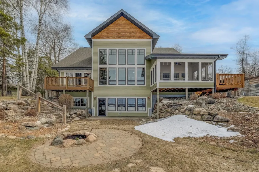 Stunning Lands End custom built 4 BR/4 BA lake home situated on 1.68 acres w/gradual elevation of 109' lake frontage on Gladstone Lake. Walk into the vaulted great room w/2-story stone fireplace & well-designed chef's custom kitchen featuring 2 center granite islands, under & in cabinet lighting, & walk-in pantry. Enjoy the cozy screened in porch, main floor laundry, & additional den/office. Main floor owner's suite w/deck, double closets, step-in shower, jetted tub, dual sinks, & heated floors. Upper level open sitting area sits between 2 large BRs, additional built-in bunk bed space & full bath. Lower-level walkout has an amazing lake view w/family room, built-in bar area w/full kitchen, large bedroom, bath, & walkout patio w/built-in firepit. Cedar closet, abundant storage, oversized attached 2+ car heated/insulated garage, detached 32x24 garage, adorable children's playhouse, sprinkl...