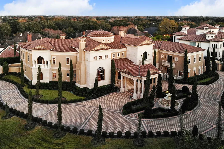 Superbly positioned on approximately 1.68 acres, this exquisite palatial style residence offers over 19,000 square feet (per appraisal district) of rare opulence. Enter the front gates to the columned and covered driveway entry area. A grand entry foyer features dual sweeping marble staircases with rotunda ceiling and Tiffany-style glass domed ceiling, dramatic chandelier, and central fountain. Constructed with many detailed and intricate moldings, marble floors, Venetian plaster walls, custom cabinetry and ornate finishes, gold leaf accents, and crystal chandeliers. The floor plan offers grand formal entertaining areas, large dining room, island kitchen which opens to family and breakfast area, 1st floor primary with luxurious bath and huge closet, elevator, a home theater with tiered seating and large screen, and lavish secondary bedrooms. The focal point of the back patio is the sparkling pool with water features and flaming corner fixtures. Truly magnificent Sweetwater showplace!