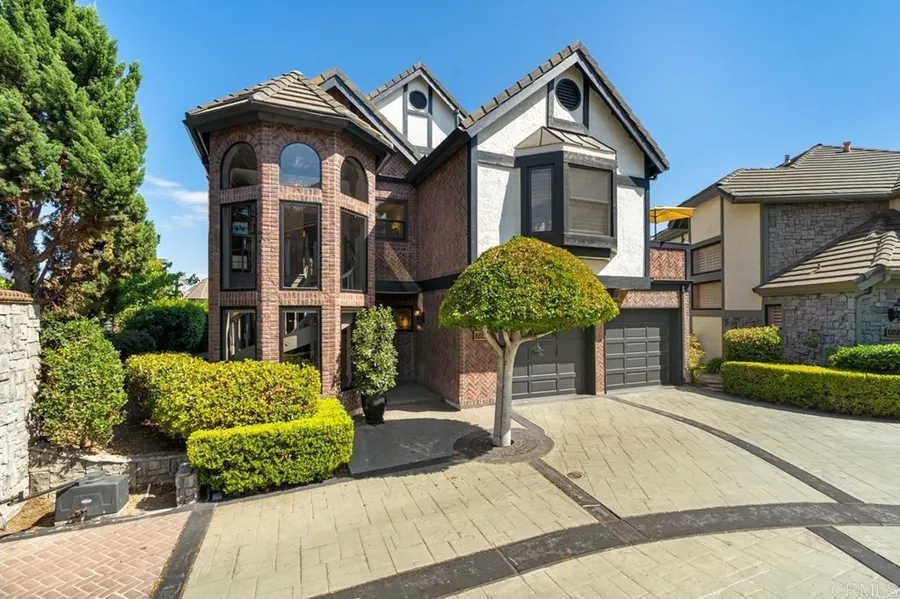 Potential 4th bedroom in loft. Completely remodeled storybook Tudor-style detached "forever home" in the desirable gated enclave of Barrington Place. Corner lot location with views of the surrounding hills! 2-car attached garage with guest parking. Multiple balcony and patio areas, huge main suite, and community pool & spa. Immaculately updated with pride of ownership throughout. Practically every aspect of this home has either been updated or replaced. As you enter you are greeted by a grand circular staircase and a New designer stairwell chandelier from Black Whale Lighting on dimmer with dimmable halogen bulbs. The living room has all NEW Hunter Douglas custom window shades, ceramic fireplace logs grate screen and ember material, porcelain tiles and grout on fireplace bench and around fireplace, rustic/resawn wood mantel, and cabinets in bar area painted. New porcelain tiles and grout on bar area counter, under cabinet 32+ can refrigerator, and Decora Light switches/dimmers. Gorgeous kitchen with NEW Cosentino quartz counter, Omega cabinets & island, low profile Zephyr range hood, high hat light fixtures in the center of the ceiling with LED bulbs. New Kitchenaid flat glass cooktop, refrigerator, oven, and dishwasher. All NEW Sharp drawer style microwave in kitchen island, extra large single stainless steel sink, Moen single handle faucet with drop-down spray head, Aquasana three-stage water filter, pocket door for pantry, and Decora Light Switches/Dimmers. Powder room with all NEW vanity Lighting, Omega brand vanity and new hardware, Cosentino quartz counter that never requires sealing. New Moen faucet and stainless steel supply lines, ceramic sink. All NEW American Standard Champion No Clog low flow toilet, Panasonic high CFM exhaust fan with light, door hardware, wallboard/sheetrock, and wall tile and grout that both dont require sealing. Large dining room with All NEW designer chandelier with LED bulbs, curtains and curtain rods, Decora Light switches/dimmers. Spacious laundry features a new Samsung front loading washing machine and gas dryer with a new flexible duct hose All NEW stainless steel sink and faucet, supply lines and washer/dryer hookups, LED ceiling and wall light fixtures Immaculate garage with all NEW luxury vinyl plank flooring by New Age Products, wall cabinets and ceiling mounted storage rack, and LED Ceiling Lights. All NEW exterior exhaust hood and flapper with remote controlled temperature and exhaust fan to vent the garage of heat. All NEW thermostat, registers for HVAC, hot water heater, isolation valves, and expansion tank. Too many new features to mention including; New Milgard rear double opening entry door threshold and a retractable screen. Hunter Douglas designer window blinds. New textured Italian porcelain plank floor tile and grout, both never need sealing. All NEW 6 high MDF baseboard and cabinet cove molding and paint throughout. New Valve to isolate drip irrigation from house water main, circuit breakers, gas furnace, and thermostat. All New roof tile re-lay with double 40lb paper, flashings, galvanized metal chimney crickets; Over 300 new roof tiles were replaced (Cost: $55,000, which includes the cost to install scaffolding around the entire house), New O'Hagin attic vents added. Quietcool whole house fan with remote control. Inside of all gutters coated with Flex-Seal waterproofing membrane to increase the useful life and quiet any rain noise, and exterior trim paint and replacement of all damaged trim with new resawn Douglas Fir trim This is a GATED COMPLEX consisting of 21 DETACHED homes. HOA maintains the community grounds, so there is no landscaping to maintain. A community swimming pool & spa are just a few doors away. Only minutes to the BEACH!