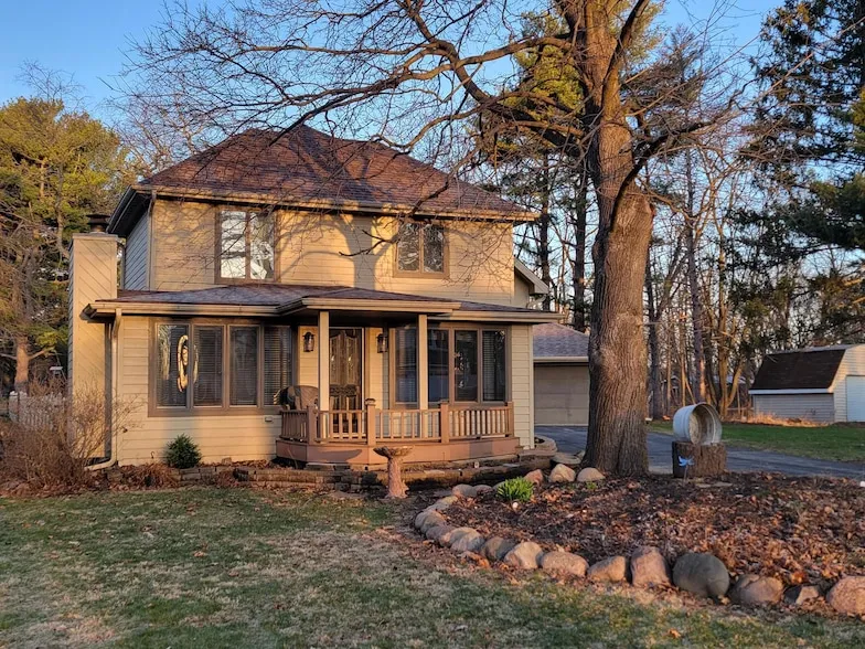 Close to Delavan Lake this 3BR, 2BA home offers lake views and 1.69 acres of rural bliss. Nicely updated kitchen and great room offer plenty of entertaining space. The kitchen features luxury vinyl plank flooring, granite counter tops with island, stainless steel appliances and direct access to the back deck. Newer cabinetry, soft close doors, walk-in pantry and first floor laundry. The great room features a gas fireplace and spacious floor plan. Upstairs is the master bedroom with wrap-around balcony sporting views of the water and a wooded back yard. Outside you will find a large back deck, a covered front porch and a 2-car garage. The parcel is large enough for another storage building for boats or recreational toys.