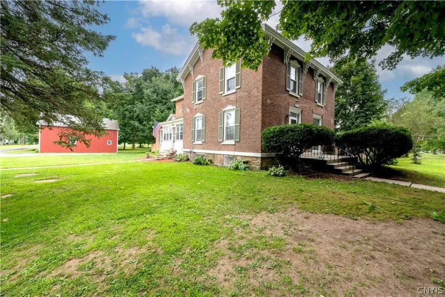 Just under 3000 sq ft Colonial Brick Home with 1.70 acres and a 2-car, 2 story barn. The home has 13 rooms for sleeping, office, remote learning, play space, and more storage than you can image. The large kitchen is centrally located between 2 enclosed porches. There is a full bathroom on each floor, and both have been updated. There is a first-floor laundry and a second-floor kitchen. Off the home, is a fully enclosed fenced on a large portion of the yard. Close to home is a playground, pharmacy, family doctor, dentist, pizza and ice cream parlor. Enjoy the seasonal views of the area from inside and out the home.