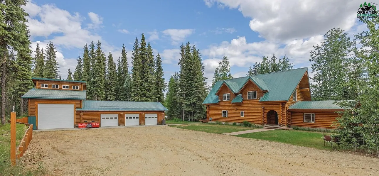 Must see this custom Alaskan log home, close to the University. This beautiful private home and shop are perfect for the adventurous type, and located close to trail systems. The large living room with fireplace and vaulted ceilings greet you when you walk in. Spacious kitchen with granite countertops and stainless steal appliances are to your left, and jack and jill bedrooms to the right. Enjoy your Remo deck in the very large master suite with vaulted ceilings, and additional family space in the upstairs loft. Enjoy the large wrap around deck in the summer, to get the full affect of the seasons sunshine. This home has a detached 1,144 sq ft heated 3 car garage, and bonus room/bathroom and additional 1,460 sq ft shop/office/studio big enough for a large ocean boat, or semi truck so you can run your Alaskan adventures, or business right from home! Thinking about the cost of heat? There are two boilers, and a pellet stove in the garage to interchange with the seasons, and desire or needs. New septic system installed by Arctic Dirt Works this spring. Add in a separate dry sauna, and a whimsical tree house and your all set for the ideal Alaskan lifestyle! Looking for more privacy? Owners are also selling the additional 1.56 acres next to the home for $45,000 first right of refusal to the buyers. Additional lot is PAN #582417.