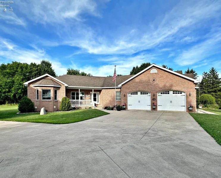 Discover the epitome of quality craftsmanship in this exceptional brick ranch home nestled on 1.7 acres, just at the edge of town.Upon entering, you are greeted by an inviting open floor plan &living room featuring a vaulted ceiling & french doors that open to a covered patio.The heart of the home features a generously sized kitchen with an abundance of storage, granite counters & 9' ceilings accentuated by natural light and a sense of openness.The expansive master suite will surely impress, offering 3 closets, a luxurious bathroom w/ double sinks, tiled walk-in shower, jetted tub & a private deck!Practical amenities include a main floor laundry & for added living space, the partially finished basement includes an egress window and plenty of additional space customizable to fit your needs.A spacious 32x48 building w/ 12' overhead doors is perfect for hobbies or storage.This property combines quality construction, thoughtful design, & a desirable location, making it a rare find!