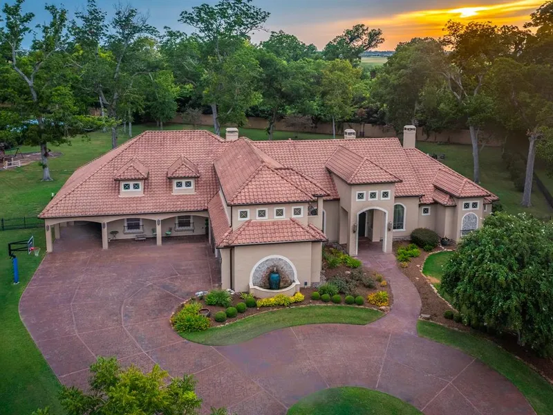 Spacious luxury living in Sovereign Shores Estates! RECENTLY UPDATED. Great location on a serene cul-de-sac street, large lot and gorgeous mature trees. Inside you will experience the elegant open, light and bright ambiance of this home freshly painted 9/2023. Impressive grand entry with ornate inlayed travertine floor complemented by wood ceiling and amazing view to resort style pool. Elogant area to welcome guests! The kitchen is a culinary delight with walk-around island, flowing countertops, Viking and Sub Zero appliances. Adjacent is wonderful walk-in butler's pantry with second dishwasher. The primary bedroom is truly an owner's retreat featuring gas log fireplace, built-in cabinetry,designated dressing area, two walk-in closets and extravagant bathing room. Upstairs hosts a media room with full amenity wet-bar, game room with custom cabinets and a secondary bedroom. Recent updates...