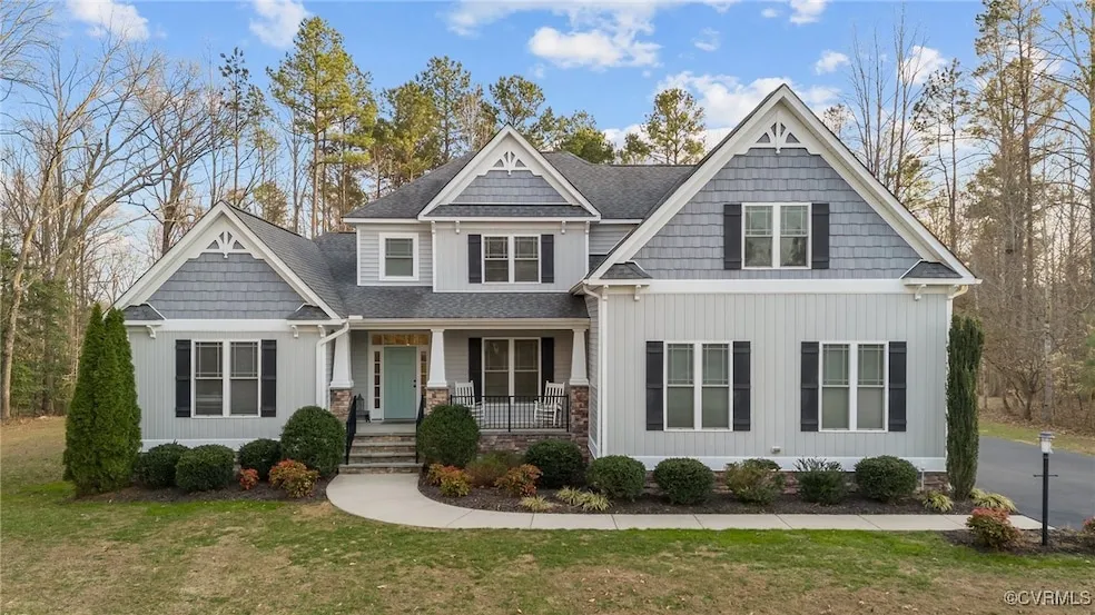 Discover this stunning craftsman-style 5-bedroom, 3.5-bath custom-built home on a quiet cul-de-sac, offering privacy & peaceful living w/ no HOA on 1.77 acres. The fenced garden area includes blackberry, raspberry, & blueberry bushes w/ grow boxes & a drip hose watering system. A 3-car garage & expansive blacktop driveway provide ample parking. Inside, the 1st floor features engineered hand-scraped wood flooring in the entry, living room, family room, kitchen, eat-in kitchen, & dining room. The family room boasts a raised hearth gas log brick fireplace, built-in bookshelves, recessed lighting, & access to a large rear deck. The open kitchen centers around an expansive island w/ cabinets, drawers on both sides, an industrial-style sink, & dishwasher. The gas range, electric wall oven, & microwave are Frigidaire Gallery appliances. A baking station w/ open shelving above. A large walk-in pantry w/ custom shelving & barn door, plus an extra pantry/storage space, offer exceptional storage. The mudroom includes built-in cubbies w/ coat hooks & leads to the garage. The cozy dining room features a 2nd gas log fireplace. The 1st-floor primary suite has new carpeting, a soaking tub, porcelain tile/glass wall shower, separate water closet, & double sinks. The suite also has a walk-in closet plus a 2nd closet w/ laundry. An attached office w/ a separate exterior entry could become an extra walk-in closet.The 2nd floor has all-new carpeting. The guest bedroom has an ensuite bath w/ a tub/shower combo. 3 additional bedrooms share a hall bath w/ a tub/shower combo & double sinks. A 2nd laundry closet is upstairs. The 5th bedroom is currently a game room. Additional highlights include a huge walk-in attic, whole-house water softener, & electrical panel transfer switch for a generator. The home is serviced by a 300-ft well, conventional septic, & 2-zone electric HVAC. The buried propane tank supplies gas to fireplaces, a tankless water heater, & range. This home blends custom finishes, modern conveniences, space, & privacy.