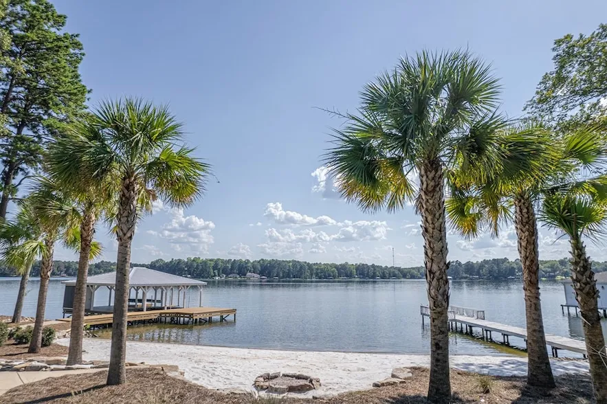 Beach front lake cottage meets modern Pasco. Welcome to 310 Cold Branch. A newly constructed lake home, with stunning views from all levels on the most sought-after Rooty Creek area of Lake Sinclair. This custom built 3 story home comes complete with your own ELEVATOR! Double boathouse, deep water with 110+ feet of water frontage and your own beautiful white sandy beach with Palm Trees! You will IMMEDIATELY notice the quality and craftsmanship of this beautiful custom home. This home has wide plank hardwood floors, custom cabinetry and beautifully tiled baths, 5 security cameras, and a Sonos music system inside and out. The kitchen appears as though it's been lifted straight from the pages of a magazine featuring a beautifully oversized quartzite water fall island, custom cabinetry, stainless steel appliances, double ovens, 2 dishwashers, 48 gas cooktop, pot filler, custom Vent-A-Hood, Butler's Pantry and full wet bar with wine cooler. There is a separate dining room off the kitchen overlooking the white sandy beach and beautiful Lake Sinclair. A Pella slider door opens up from the kitchen to your outside oasis complete with fireplace, Sonos sound system, ceiling fans and cable rail system. The Primary suite is located on the main floor and includes a custom walk-in closet, a sitting area that opens to the covered porch with fireplace. The primary bath has a luxurious custom tiled shower with double shower heads, a beautiful soaker tub and double vanities. Upstairs you will find 3 additional bedrooms with 2 additional beautifully tiled custom baths. Head downstairs to t