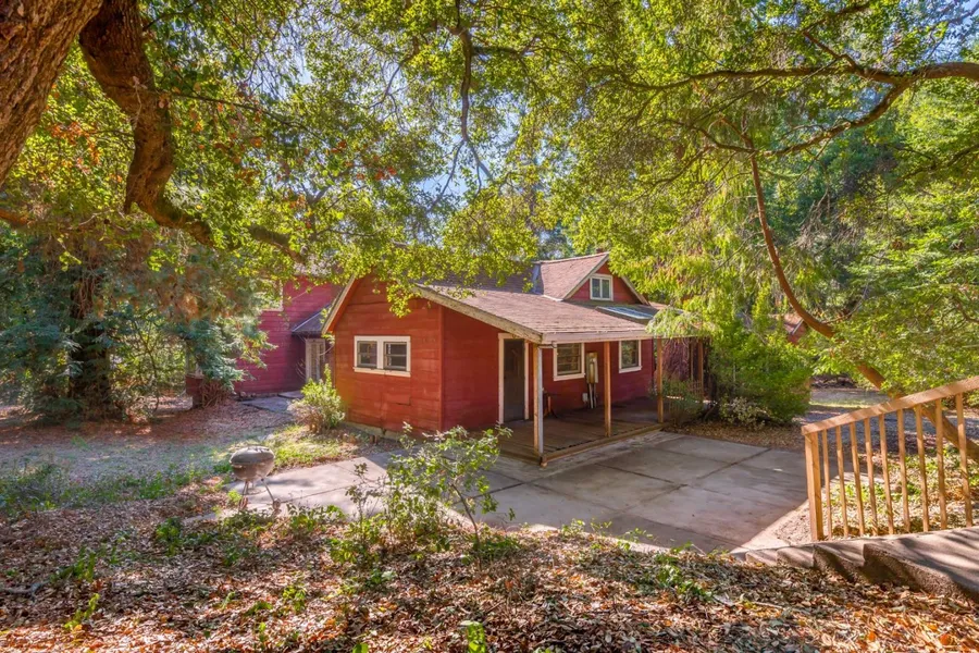CLOSE-IN COUNTRY FARMHOUSE FIXER. Bring your vision, passion and tools to this classic, 4-bedroom, 2-bath Farmhouse and close-in, oak-studded acreage! Imagine a future Thanksgiving with helpers and fixin's filling this roomy country kitchen with yummy smells. Folks meander in and out the French doors to explore under the canopy of trees and wisteria, or bask in the afternoon sun's warmth on the deck. They'll gather to feast around your generous table, and cozy up to tell tales by the fire. Whatever your imaginations -horses, chickens, kids, car-stuff, pool, pets- this is the ideal canvas. Super convenient to Scotts Valley and Hwy 17 yet peaceful. Only 20 min to Los Gatos;10 min to Santa Cruz beaches. Includes .5+ acre parcel 068-281-13; together approx 1.72 acres. Other structures include a 2-car detached garage, laundry shed, old goat barn. Note: Home is livable but DEFINITELY NEEDS WORK. Rooms not pictured are still full of possessions. Being sold AS-IS and shown BY APPOINTMENT only.