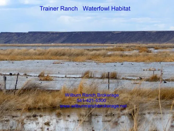 This property consists of 1726.36 acres situated in Harney County Or. It is within a few miles of the Malheur National Wildlife Refuge where hundreds of thousands of wildfowl make their home. This was a hay/grain/cattle ranch for years. It was then put into the Wetland Reserve Program in conjunction with Ducks Unlimited. They have spent an unbelievable amount of money in putting in canals, weir boxes, dikes, nesting areas, and sanctuaries for the waterfowl and upland birds that nest here. This has paid off resulting in large amounts of both types of birds nesting and feeding here. I have hunted here and it is truly fantastic with large areas for many hunters to be here at one time hunting. The land is flat with mountains and hills surrounding it. You can see the birds coming from a great distance and it is extremely gratifying to call and watch them come in from so great a distance. Th...