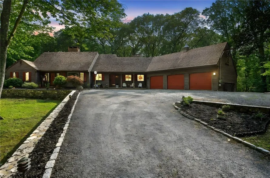 Custom Cape Cod Retreat on 1.75 Acres of Wooded Tranquility. Welcome to this Cape Cod-style home, perfectly situated on 1.75 acres of serene, wooded landscape. Tucked away on a private road, the property is introduced by a grand entrance flanked by lighted stone pillars, creating an impressive sense of arrival. Step inside to discover a spacious and thoughtfully crafted floor plan, ideal for comfortable living and entertaining. Highlights include: Eat-In Kitchen with Quartz countertops and a cozy corner dining nook featuring built-in bench seating, Formal Dining Room with a charming brick fireplace opening to a screened porch and a grand deck overlooking the picturesque backyard, Sunken Living Room with fireplace complimented by an inviting Family Room across the hall. Two First-Floor Bedrooms connected by a Jack & Jill bathroom. Second Floor features a spacious Primary En-Suite, an additional bedroom, private home office and full tiled bath. Striking Two-Story Fieldstone Foyer entry with a beautiful turned staircase, Hardwood Floors Throughout the main living spaces, Finished Walk-Out Lower Level offering a large recreation room perfect for entertaining guests and a 3-Car Garage providing ample space for vehicles and storage. Meticulously maintained and ideally located just minutes from the shops, dining, and amenities of East Greenwich, this exceptional property offers the perfect balance of privacy and convenience. ________________________________________