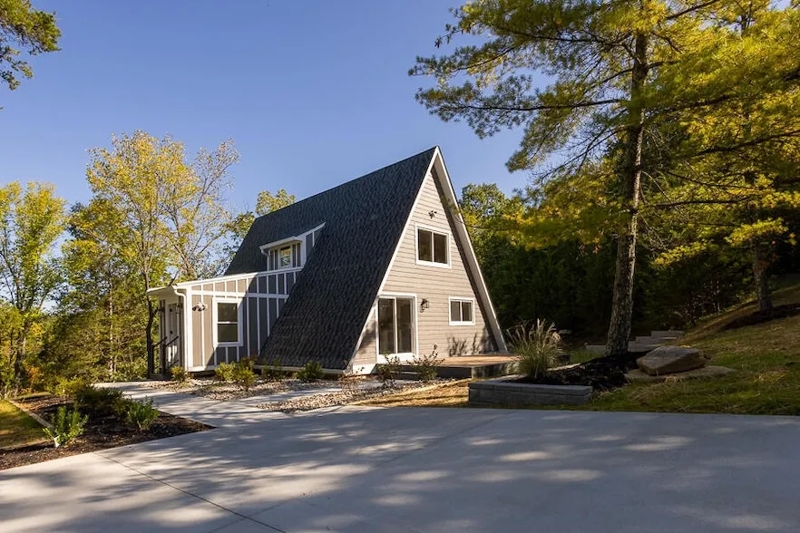Discover a tranquil and peaceful retreat in this spacious A-frame home, featuring a large finished lower level that walks out to the outdoors. Nestled on 1. 74 acres of beautiful wooded land, this home boasts impressive beamed ceilings and a roomy loft bedroom. It also includes a new mudroom entrance and a modern gourmet kitchen equipped with stainless steel appliances, along with newly renovated bathrooms. There is ample off-street parking and plenty of space for additional outbuildings. Step outside to enjoy the deck and patio areas.