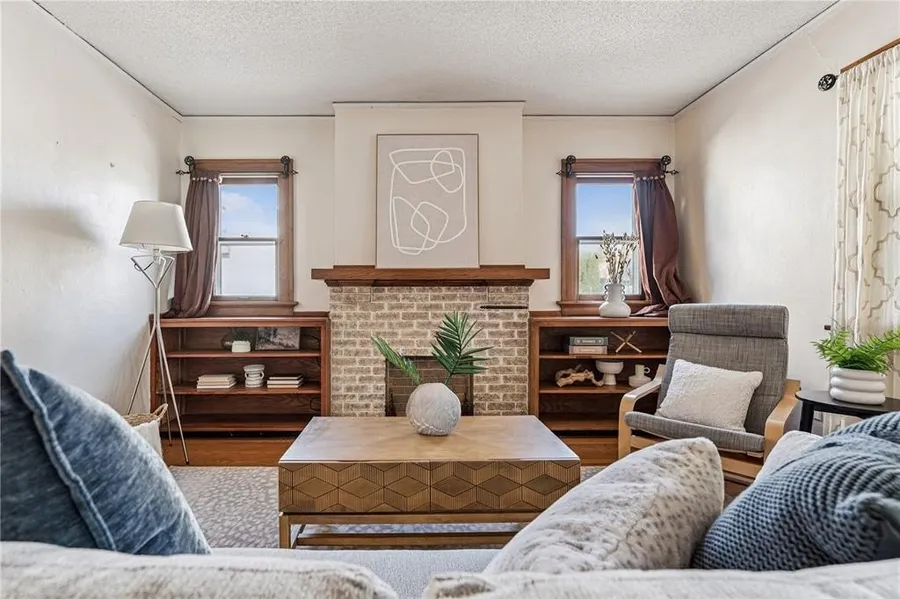 Come see this beautiful 3 bedroom home with a bonus non-conforming upstairs space that could serve as a 4th bedroom. The main level features wood floors, build-in shelving, and a cozy faux fireplace in the living room, flowing into the dining room and then the kitchen with a gas stove and included appliances. Two bedrooms and a full bath complete the main level. Upstairs, you'll find a spacious bedroom plus a versatile open area - and even a fun little hidden nook tucked inside the closet. The basement offers a partially finished space, laundry area with washer and dryer included, excess storage, and a half bath. Outside, the fenced backyard is ideal for entertaining with a patio, detached garage, and plenty of greenery. A magnolia tree, apple tree, and thriving rhubarb plant add extra charm to the landscape. Major updates include new siding, roof, gutters, water heater, water softener, & a radon mitigation system.