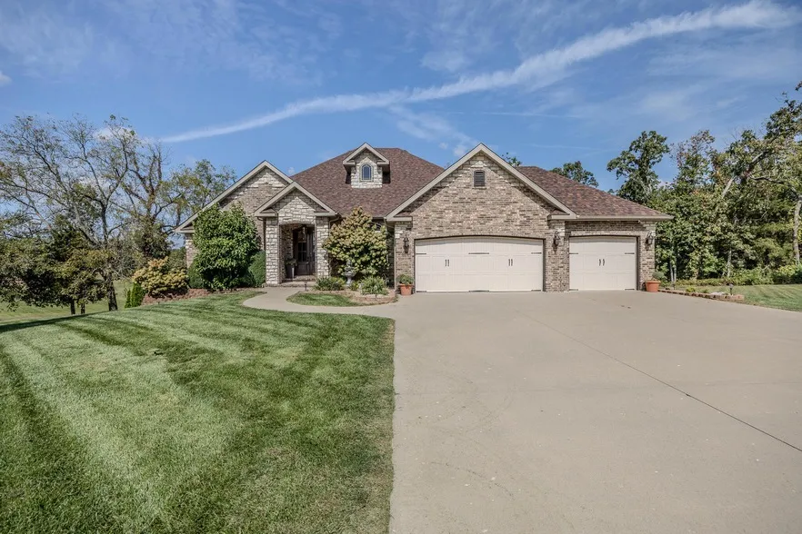Welcome to this impeccable, all brick home nestled in Castle Rock Estates! From the tall ceilings to the brick backsplash in the kitchen & the classy fixtures, absolutely nothing was overlooked in this home. Starting on the main level, take a moment as you're walking through the formal entryway to appreciate the open living room, brick fireplace, natural light coming through the large windows, & the beautiful, well-cared for flooring. Moving further, you'll notice the formal dining area. The kitchen is a chef's DREAM! Top-of-the line stainless steel appliances, custom cabinetry that offers SO much storage, & even a cute coffee bar. The primary suite offers the luxury of tray ceilings, a double vanity, a separate walk-in shower & tub, two closets, AND easy access to the partially covered deck. There's also another full bathroom & two large bedrooms on the main level. Downstairs in the wal...