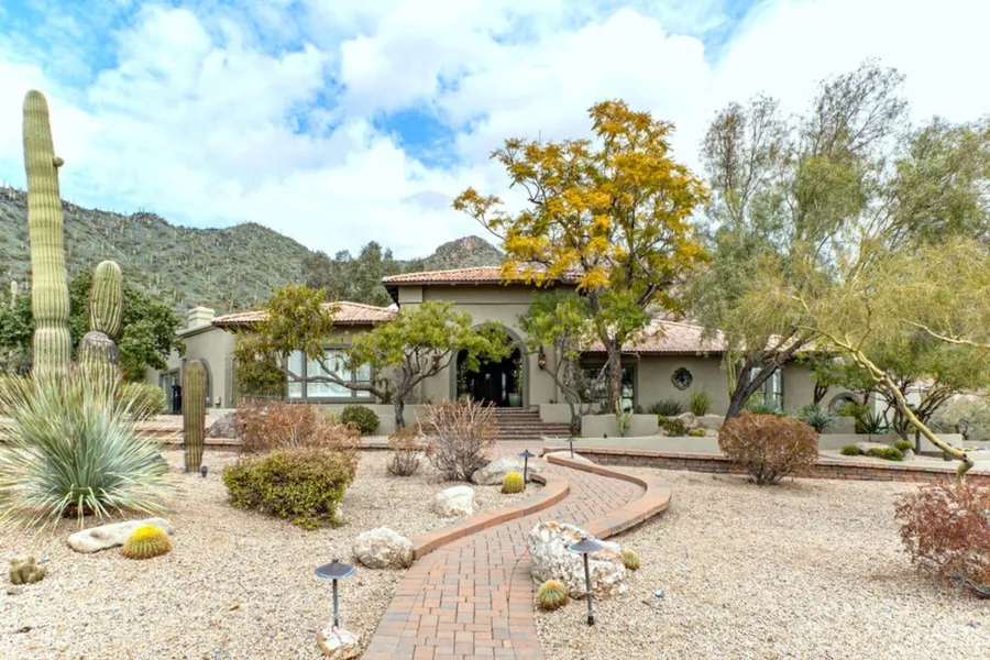 Welcome to prestigious gated Grand View Estates! This perfectly sited luxurious home takes full advantage of its stellar 1.78 AC location! Enjoy breathtaking sunrises & sunsets, elevated distant valley & Boulder Pile views from the private bkyd w/diving pool & view deck! The home boasts paver circular & large driveways, a stately covered entrance w/fountain, vaulted, wood-beam & coffered ceilings, canterra fireplace, wet bar & skylights t/o. Significantly updated in 2014, recent interior paint, full roof, light wood flooring (2018), a well-appointed lg eat-in kitchen w/Thermador appls, dbl ovens, slab granite & pantry. Huge Master Retreat offers a cozy fireplace in Sitting Area, lg Master Bath w/steam shower & sep Fitness/Office Rm. 3 Ensuite Bdrms & Media Rm nicely complete the interior.