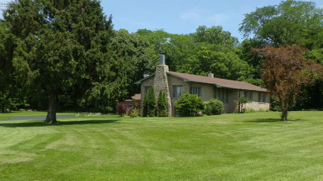 Beautiful Setting with this amazing home located in Danbury township....surrounded by nature preserve! Unique Stone Exterior on this 3 bedroom/2 Bath home. Main Level is 1641 sq.ft.plus 288 sq ft Family Room on lower level with Walkout! Large eat in kitchen with wood cabinets too. Spacious LR has custom Cherry Paneling on one wall. Dining Room has wood paneling on several walls. Floor in DIning Room has cork under carpet with HW Floor surround. Back main entry from deck has Slate Flooring. Family Room in basement(Lower) has a stone front wood burning fireplace and walls are paneling from Germany (wormy checknut). Large laundry in basement as well as two other storage areas (one with cedar and built in drawers and open closet). Large area in basement room with many possibilities...current all open...approx 24 x 24.. Detached garage 24v X 42. Large wood deck with over 800 sq ft..