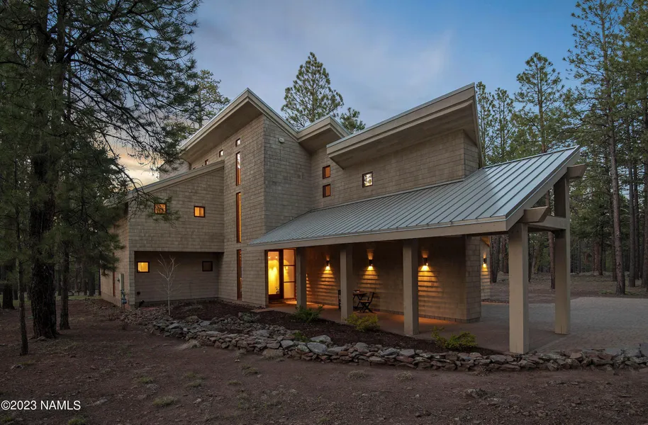 This luxurious Westwood Estates home is a masterpiece of design and craftsmanship that creates a modern yet timeless living experience. Designed by renowned architect Brian Cox for his own family, this home is replete with features personally chosen to maximize great style and function. The beauty of nature seamlessly melds with architecturally interesting features and finishes, creating a work of art that is called home. If you desire modern elegance, privacy, and the ability to appreciate both thoughtful design and nature on a forested homesite, this home is your unique opportunity. Located in Westwood Estates, a Flagstaff custom home community with access to trails, nature and golf, and only minutes from Downtown Flagstaff, this is a one of a kind home.