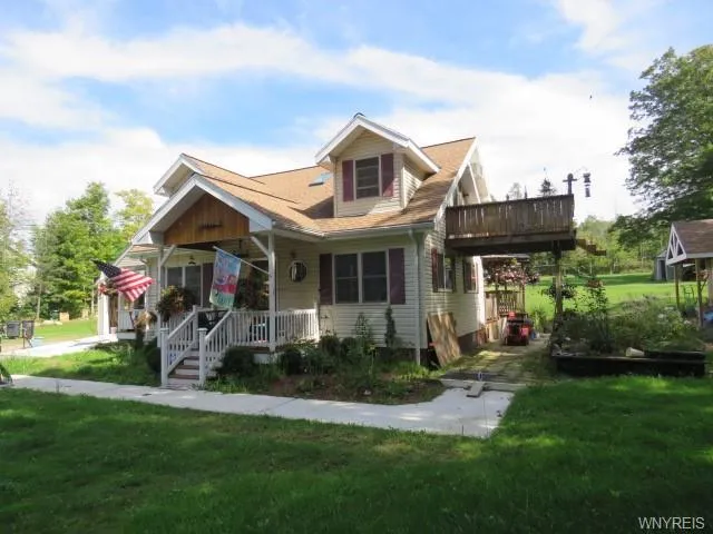 2 acres of property with 200 feet of frontage on a quiet Country Road. East Aurora Schools. Around the block from the Waldorf School. 3 bedrooms & 3 full baths. New windows throughout. Vinyl sided. Newer roof. Huge Deck on the rear of the house w/ a covered Gazebo. Hot Tub. Living Room. Family Room w/ wood stove opens to deck. Formal dining room. Finished basement w/ laundry and room for a Pool Table. Full bath in basement. One bedroom down. 2 bedrooms and a bath upstairs. Seller has just rebuilt the attached garage. New concrete floor, New overhead garage door, plus a two new man doors. New window overlooking the yard in an unfinished room, ready for you to turn into an office or hobby shop, Master bedroom has upper deck for morning coffee or a glass of wine watching the Sunsets. 3 skylights. Nice front porch. Yard has a firepit. Plenty of flat level lawn for Ball Games. Newer shed near...