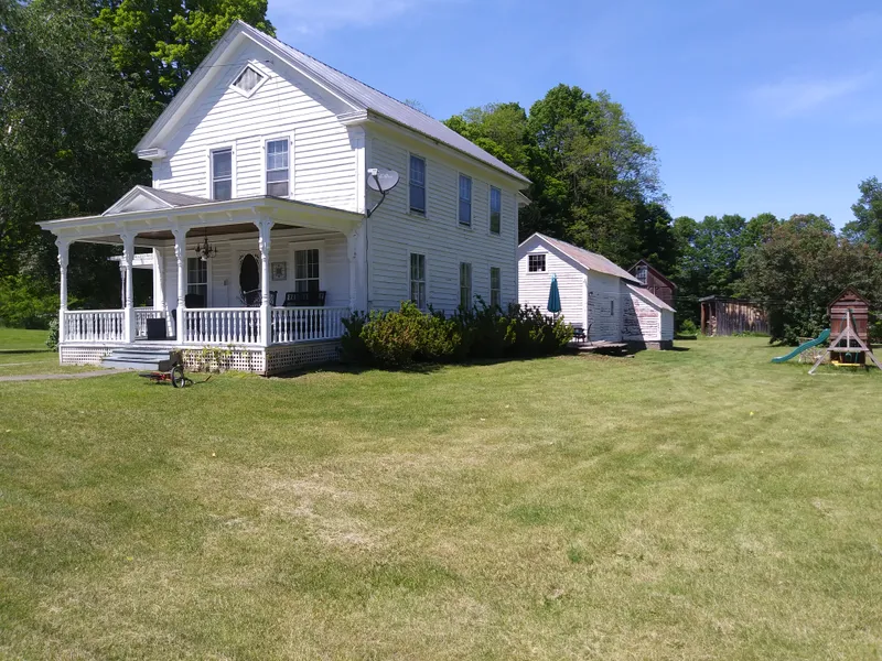 Colonial on 1.8 acres. Large lot, barns, woodshed, front porch and rear deck. Large updated kitchen with island and laundry room. bedroom and full bath on first floor. Master area on second floor with bath, office. Furnace, oil or wood. close to Lake Champlain and Lake George. A beautiful home.