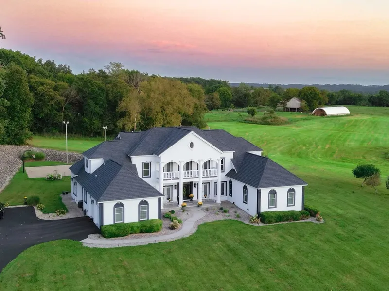 Simply stunning, luxurious and immaculate modern home featuring 5 BR and 3 full baths and 2 partials on a 1.8 acre lot with some fruits trees. Two car side entry garage with new epoxy floor. Exterior features include the Exterior Insulated Finishing system (Dryvit brand), heated 20 x 40 pool with cover, lighted basketball court, near new replacement roof, 3 balconies with stamped decorative concrete overlay flooring. Exquisite kitchen with granite countertops, Viking gas stove, GE Monogram refrigerator/freezer, open family room and kitchen dining area. Living room with 22 ft ceiling and Crystal chandelier with electric winch to lower for cleaning, library with French door entrance and sitting area with sofa. Large laundry room with sink, cabinets, washer and dryer with upright secondary freezer and industrial sized propane gas water heater. Den features gas fireplace, custom shelving, leather sofa and chairs, custom maple hardwood flooring, 70 inch TV and wired for surround sound. Master bath with en suite, soaking tub, his/her closets with French door separating BR from sitting area. Upper level of home features spacious bedrooms, outside balcony for relaxation or entertaining and attic space for many storage options. Many recent upgrades makes this home a must see for qualified and serious buyers who can benefit from this property being located in the heart of KENTUCKY.