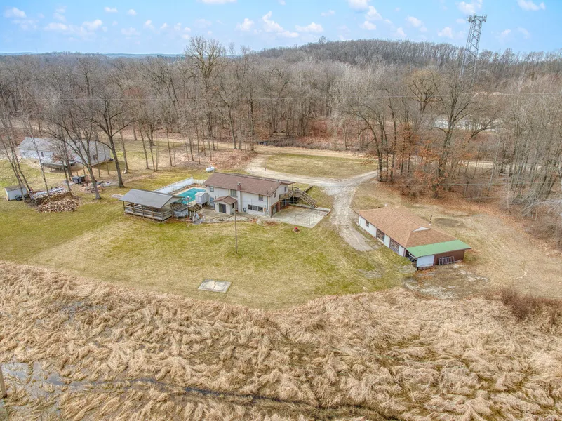 Charming Ranch on over 1.8 acre setting with In-Ground Pool & Pavilion! Escape to the serenity of country living while enjoying modern amenities in this spacious ranch-style home. Nice floor plan, kitchen adjoins the open formal dining & large living room. Primary bedroom with 2nd Full bath on separate end of house, 3rd bedroom is currently being used as Main floor laundry room, Full finished walk out basement, 3 additional bedrooms, 3rd full bath, wood burning fireplace, nice open family room, leads out to large patio, In-ground pool for summertime relaxation & entertainment, enjoy the massive covered front porch, Heated 3 car garage, perfect for car enthusiasts, plus a bonus room for a workshop, country quiet, close to 127 S for commuting. This property offers a perfect blend of tranquility and convenience.