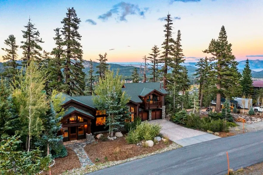 Welcome to 445 Fir Street, an extraordinary custom home nestled in the prestigious Bluffs neighborhood of Mammoth Lakes. This stunning mountain retreat perfectly captures the essence of high-altitude living, with panoramic views, refined craftsmanship, and a serene setting among old-growth trees. One of the largest lots in the Bluffs, this unique property offers exceptional privacy and space. The neighboring lot was previously subdivided and incorporated into the adjacent property, ensuring that no future construction can occur next door. This rare situation enhances both the exclusivity and tranquility of the setting offering peace of mind and uninterrupted views. Step inside to find a fully remodeled chef s kitchen featuring quartz countertops, a 6-burner Viking range, stainless steel appliances, and a walk-in pantry. The heart of the home flows effortlessly into the impressive great room, where floor-to-ceiling windows frame breathtaking mountain views and soaring hand-hewn beams crown the vaulted ceilings. A dramatic stone fireplace with a hand-carved mantel adds warmth and rustic elegance to the space. Wide-plank hardwood floors flow throughout the home, enhancing the cozy yet sophisticated mountain lodge feel. The spacious primary suite is a true sanctuary, complete with a custom gas fireplace and picture-perfect views of Mammoth Rock. The spa-like bathroom includes a soaking tub positioned to take in sweeping views above the treetops, one of the best vantage points in the house. Outdoor living is just as exceptional. Unwind in the hot tub on the deck while enjoying forest and mountain views, or gather around the built-in stone firepit and seating area for unforgettable evenings under the stars. With expansive decks and a beautifully designed outdoor space, entertaining is effortless in every season. Beautifully crafted and thoughtfully designed, 445 Fir Street is the ideal basecamp for your Mammoth adventures.