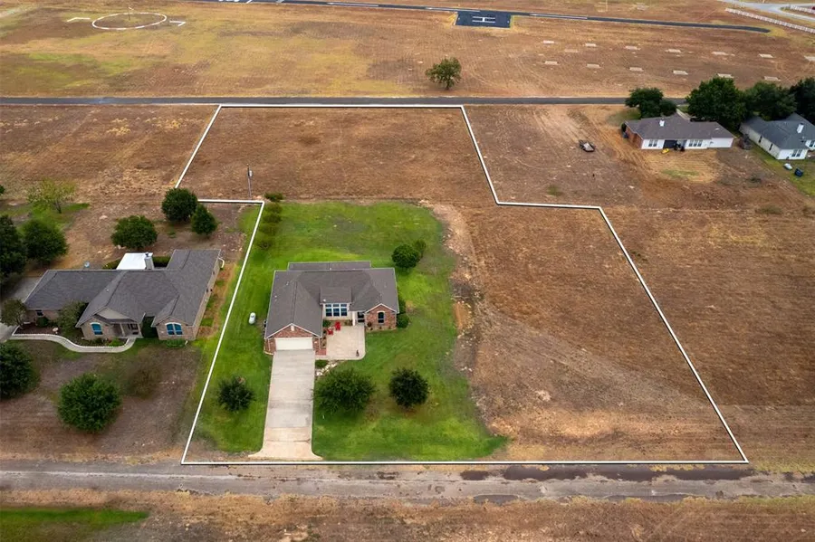 Welcome to a home that embodies the \'Resort Lifestyle\' on a daily basis! This community boasts a private airport, a Texas-sized and uniquely shaped pool, a meticulously designed golf course, and a thriving ecosystem with abundant wildlife both in the water and on land.This custom-designed home, conceived by Allen Eason, is thoughtfully laid out as a family-friendly haven. It features a split floor plan with the primary bedroom and bathroom on one side, secondary rooms and another bathroom on the opposite side, and a central entertaining space. Expansive walls of windows adorn both the front and back, allowing you to immerse yourself in the beauty of nature while in the comfort of your own living space.With the inclusion of the two additional lots situated behind the home, you are guaranteed a front-row view of the private runway, a unique privilege for aviation enthusiasts. Adjacent to the main house, the extra lot offers the opportunity to construct a barndominium or garage.