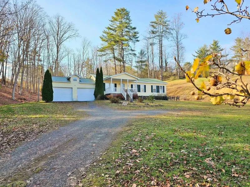 Everything you ever wanted in a home comes with this delightful 2 bedroom doublewide sitting on 1.83 acres. Offering large spacious rooms with a open floor plan. Kitchen appliances convey, built on additional for bonus/den. Don't forget the 2 car garage with storage. Step outback to a covered porch to sip your morning coffee in total privacy. Includes small storage shed and your own personal spring fed pond. Priced to sell fast. No government loans.