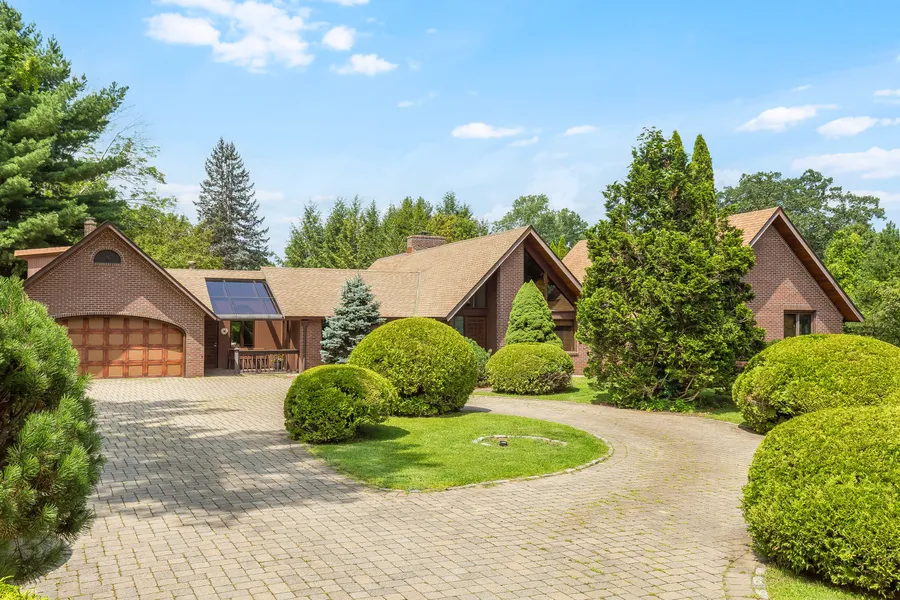 Surrounded by lush landscape & stone walls is this exquisite backyard oasis with a heated pool flanked by a mesmerizing waterfall, fabulous exterior entertaining area with built-in grill, a magnificent stone fireplace; encompasses this warm, solidly built & meticulously maintained 3 bedroom 4.5 bath home. The massive windows, soaring wood beamed ceilings and large glass framed doors extends the living space effortlessly into the magical backyard. The original owners spared no expense when building this home. There are numerous custom built in bookcases, radiant floor heat throughout the home, dual high end heating systems and whole house generator. This property offers a flexible floorplan with a spacious & bright top notch kitchen equipped with high-end appliances & cabinetry. Formal Dining Room, Large FP Great Room, Office, room with hot tub, sauna, exercise area &bath. The perfect workshop, a finished area over the garage, small barn & shed.. the list goes on! Central location!