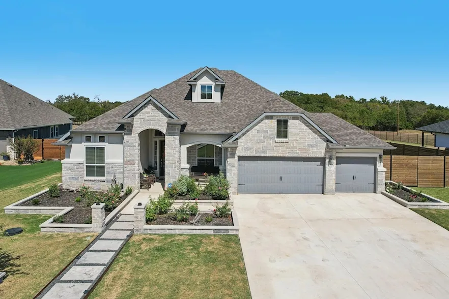 Beautiful single-story home in the desirable Northfork community, set on 1.88 acres backing to the San Gabriel River. Featuring stunning curb appeal with a stone and stucco exterior, lush landscaping, a covered front porch, and a 3-car garage, the property offers the perfect blend of elegance and comfort. Inside, an open floorplan filled with natural light showcases wood flooring throughout and a spacious living room with an electric fireplace and sliding glass doors leading to the covered back patio. The centrally located HUGE kitchen is designed for both everyday living and entertaining, featuring double islands, a breakfast bar, quartz countertops, ceiling-height cabinetry, and premier stainless-steel appliances including a gas cooktop with a custom vent hood and double ovens. The private primary suite includes a tray ceiling, electric fireplace, walk-in closet, and spa-inspired bathroom with separate vanities, a freestanding soaking tub, and an oversized walk-in shower. Three guest bedrooms and two full guest bathrooms provide ample space for family or visitors, while a powder room and dedicated office with French doors add flexibility and functionality. The covered back patio overlooks a massive backyard framed by mature trees and the serene San Gabriel River, offering a peaceful and picturesque setting to enjoy year-round. Schedule a showing today!