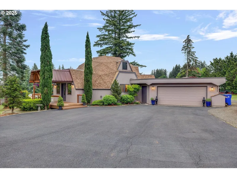 **NEW PRICE! Discover your own private oasis on this fully fenced and gated 1.84-acre flat property—packed with character, space, and stunning views of Mt. St. Helens and Mt. Rainier. Whether you're seeking peace, self-sufficiency, or room to play, this property delivers. A unique dome structure adds architectural interest and versatile space—ideal as an artist’s studio, yoga retreat, home office, or creative hideaway. The property also includes a 24x36 outbuilding/pole barn, greenhouse, garden shed, and a moveable tiny home with ADU potential. A putting green, expansive parking, and an enclosed carport (great for a game room or storage) offer even more flexibility. Inside, enjoy recent updates - new carpet, LVP flooring, lighting, paint, wood work and stainless steel appliances (2023). A Lopi wood stove, covered composite deck, enclosed hot tub, new well pump and cisterns, newer HVAC system, water filtration system + a laundry/mud room add comfort and convenience. Gardeners will love the private well with dual cisterns—plenty of water for irrigation. There's space to roam for kids, pets, and hobbies alike. Just minutes from McIver Park and the Clackamas River, this property combines privacy, potential, and outdoor lifestyle in one rare package.
