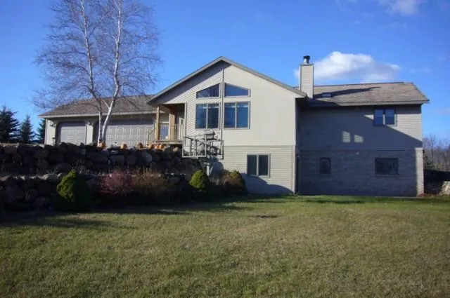 Make this custom built 2800+/- sq. ft home on near 2 acres of land w/many spruce trees surrounding the property, features knotty pine vaulted ceiling & wood fireplace in living room. Oak cabinets & hardwood floors in spacious kitchen, walk out basement, deck, Gazebo, retaining wall, large rec room in lower level w/stubbed in area for bar or kitchenette. Outside a 40x60 pole shed for storing all the toys or working in the divided off heated & insulated. Seller will install new shingles upon closing.