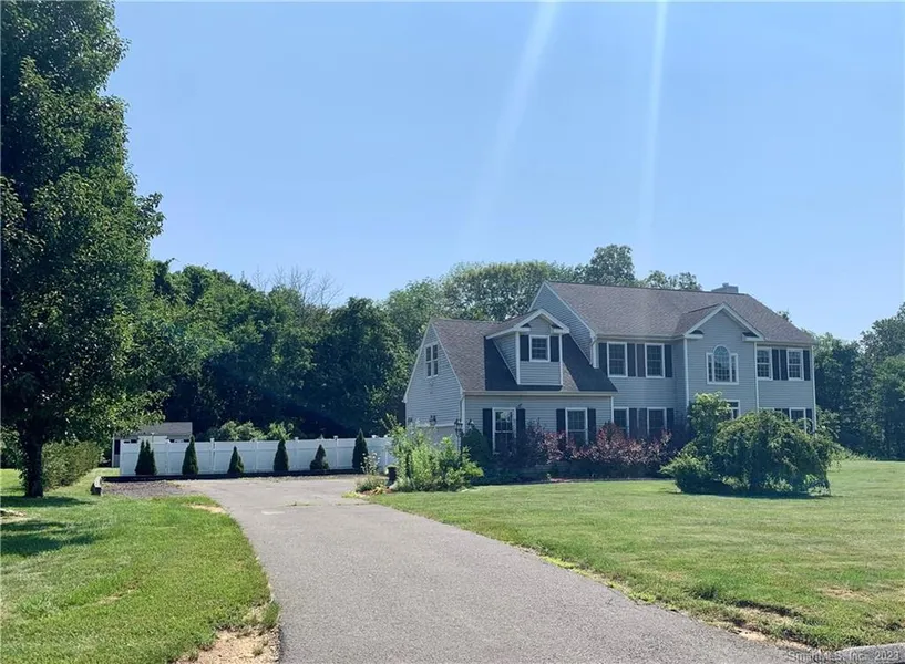 Spacious colonial in a quiet cul-de-sac neighborhood with open floor plan. Enter the bright and airy two story foyer where you will find a formal living room or office with french doors leading to family room with gas fireplace. The formal dining room opens to the large kitchen with stainless appliances and granite tops, a powder room for guests and door leading to deck and large back yard. Upstairs you will find the master suite with full bathroom, jetted tub, stall shower and two walk-in closets. Down the hall are the second and third bedrooms with a full hall bath and laundry room. At the end of the hall you will find an enormous bonus room or fourth bedroom. This colonial has a two car garage with a long driveway for extra parking, central air, and two sheds all on a level 1.84 acre of land. Front door and side glass were replaced a few years ago. Short ride to UCONN.