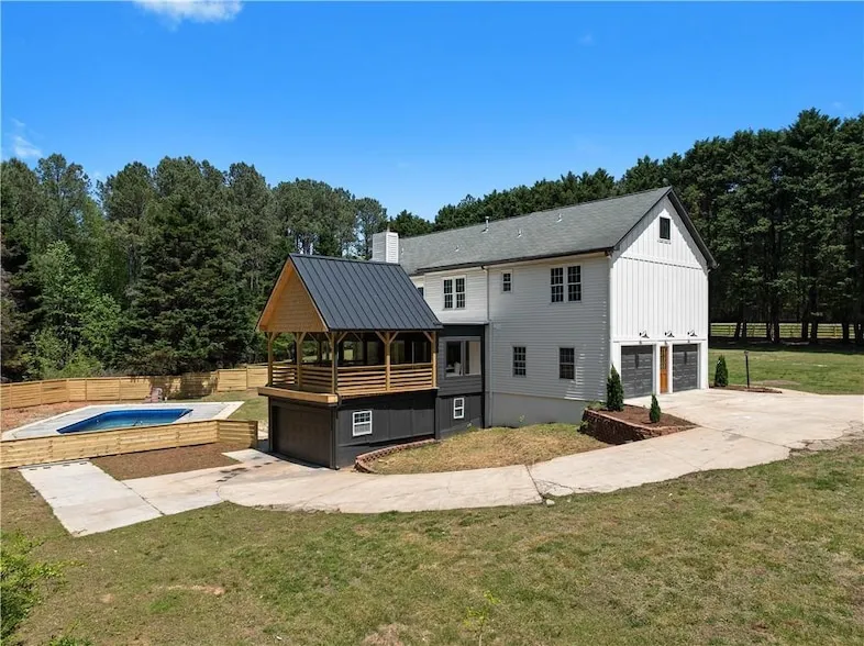 !!PRICE ADJUSTMENT!!This exquisite renovated farmhouse style home offers a unique limited-opportunity, 1.85-acre home in a private yard setting boasts 6 Bedrooms 3 1/2 Bathrooms. This stunning plan is centered around an open living concept, the gourmet chef's kitchen boasts a gas stove, sleek new countertops, and a designer backsplash with eat-in Kitchen, separate dining room, walk-in pantry, making entertaining a breeze. Dining and living room area surrounded by big bright windows allowing for tons of natural light with entry to the newly built deck. The luxurious master suite on the second level gives a spa fell with a flat bottom free standing soaking tub, separate shower and double vanity, provide style and convenience. Bonus room in the hallway that overlooks the pool making it a great play area, gym or home office. The backyard is an entertainer s dream with a custom pool with private view and fenced yard. A fully finished basement with an in-law suite provides extra space for guests or additional living areas with separate entry to the backyard and pool. This property offers limitless possibilities, ideal location, minutes to downtown Woodstock, Milton, and Alpharetta with fine dining, a roof top lounge, boutique shops, amphitheater concerts with live music and fun for all. Not to mention all Great Schools.