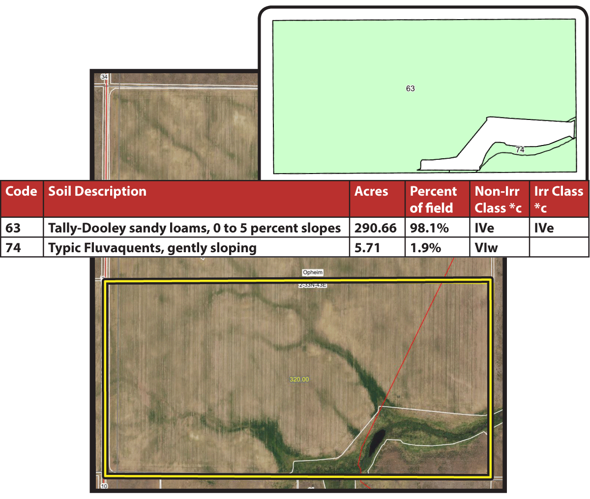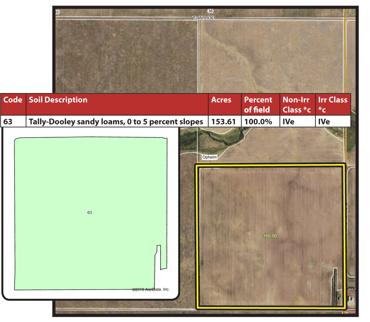 Search for detailed parcel information including; Elevation & Vegetation Maps, Ownership Information, Detailed Parcel Information, Crop History Map, Soil Survey Productivity Data, and more.