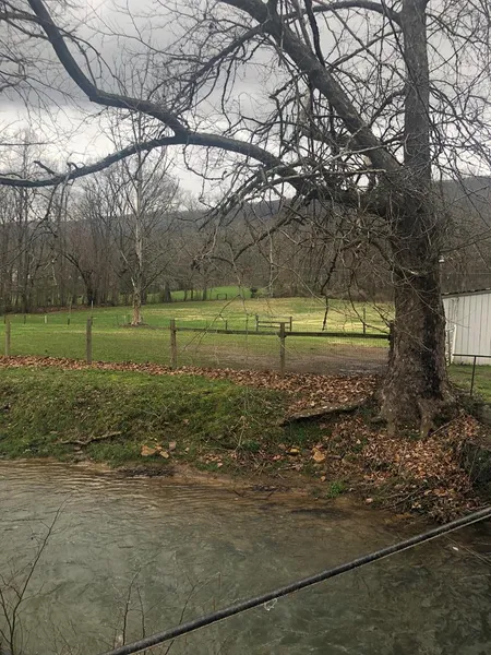 Off the grid! Over 2 acres of level prime land. Completely cleared, fenced with babbling brook bordering. Walking bridge for foot traffic. Concrete bridge for vehicles. Feeding barn and stalls. Perfect setting for that mountain home retreat or for your forever home. Your choice!!