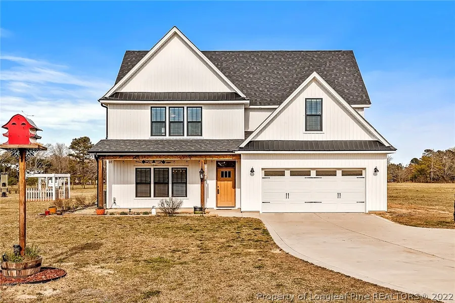 FARMHOUSE!! This almost new home is sure to blow you away from the white board/batten & black trim windows on the exterior to the shiplap and farmhouse sink inside! Home features 4 bedrooms 3.5 bath, and a bonus room. Wide open floor plan with guest bedroom and bath down. Wood laminate floors down, granite countertops, island in kitchen, pantry, subway tile, stainless steel appliances, wrought iron staircase. Sellers have done many upgrades to include, shiplap in the living room, kitchen & master bath, shelves in living room, 2-inch faux wood blinds throughout, extended patio in the backyard, patio pavers around the front and side of home, ceiling fan on front porch and landscaping. Master bedroom is huge & has a barn door at the walk-in closet & master bath has gorgeous tile, garden tub and separate shower. All situated on almost 2 acres! Conveniently located to I295, shopping, dining, Fort Bragg and more! Come relax at your own little piece of heaven on earth!
